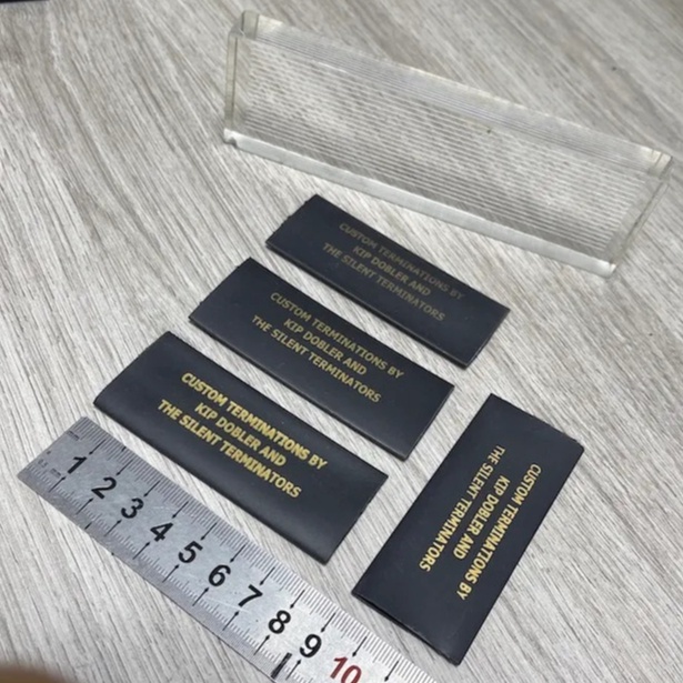 Nhiệt co trang trí có chữ * Trang trí cho dây loa , dây nguồn , dây tín hiệu tự chế của các sếp - Dùng nhiệt co loại dày tốt , đọ co còn 50% nguyên mẫu sau khi hơ nóng .... A. Câu slogan của Cardas - Dài 80mm - Vào được dây có đường kính dao động từ 12mm => 22