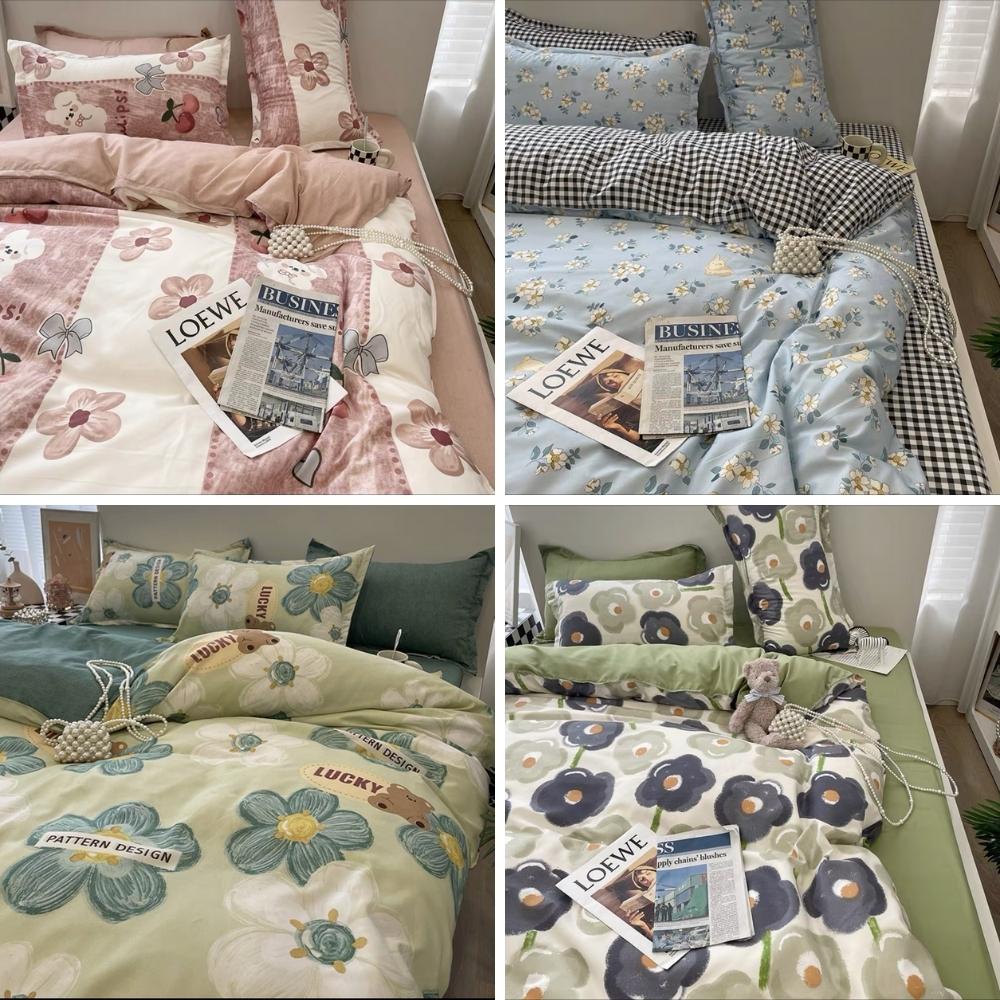 Bộ 4 món chăn ga gối đệm poly cotton ga giường họa tiết hoa nhí vintage, bộ ga gối drap giường bo chun - Otama Bedding