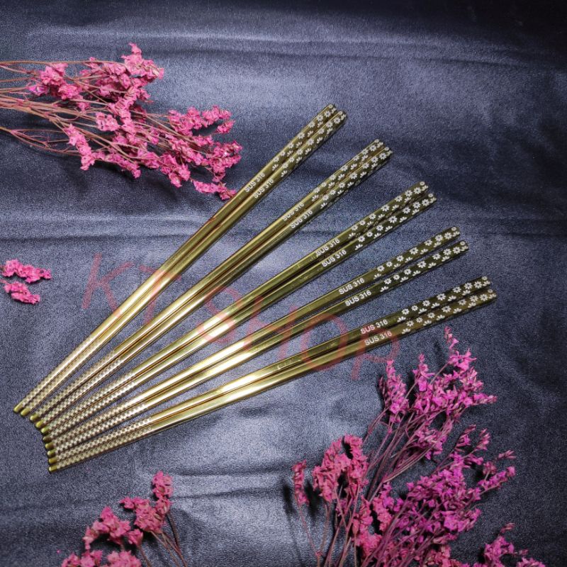 Chất liệu INOX 316 CAO CẤP (CHUYÊN DÙNG CHO THIẾT BỊ NHÀ BẾP CAO CẤP VÀ Y TẾ) Kích thước 23.5 cm Bộ sản phẩm gồm 5 đôi đũa Màu sắc ĐEN, BẠC, VÀNG Thiết kế đũa vuông, phần đầu được làm nhám giúp đũa không bị trơn.