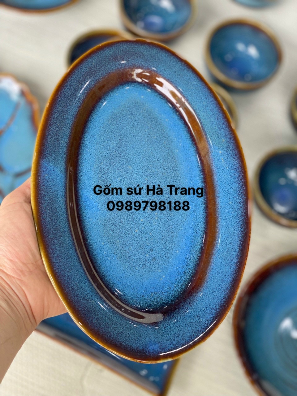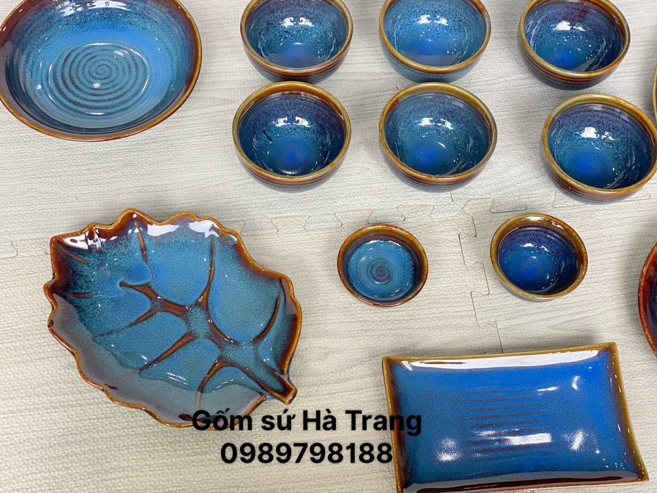 Bộ bát đĩa gốm sứ Bát Tràng cao cấp men hoả biến thiên thanh HBTT00116 chi tiết: 6 bát cơm *45k = 270k 1 mắm * 35k1 muối *30k1 tròn f14*55k1 tròn 20 * 170k1 tròn sâu lòng 20 *190k 1 lá hồng s3 25* 18c...