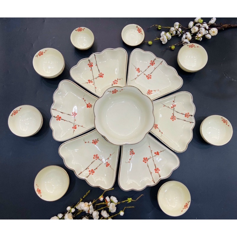 Bộ Bát Đĩa Hoa Mặt Trời Cúng Gia Tiên Vẽ Tay Hoa Đào Mai Sen 2 Size Bộ Đồ Ăn Sứ Bát Tràng Cao Cấp Làm Quà Tặng