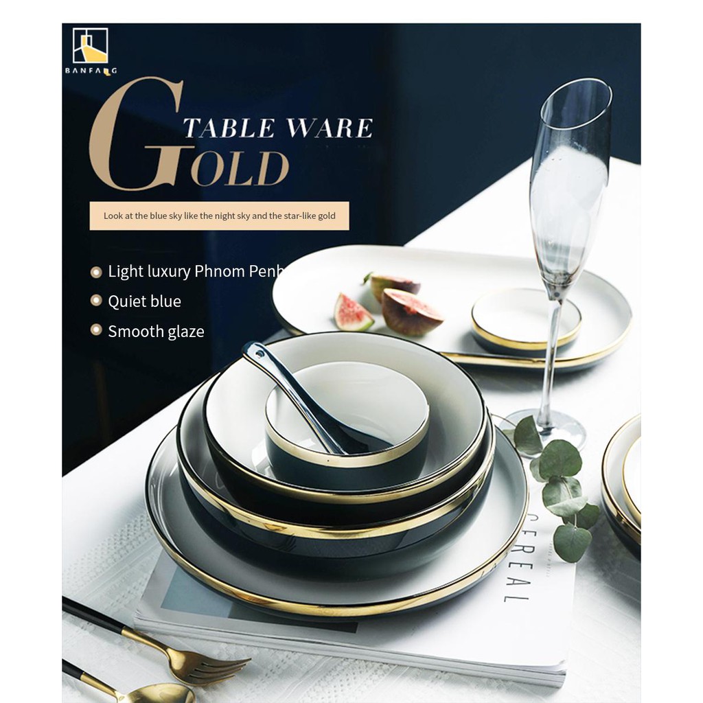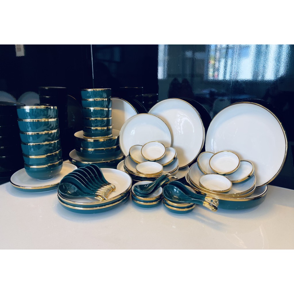 Bộ bát đĩa ăn vân đá cao cấp, với vân đá xanh vân trắng , mạ vàng Thiết kế độc đáo , hiện đại, , chất liệu men sứ cao cấp , bộ dành cho 6 người Phù hợp: lò vi sóng , bàn ăn