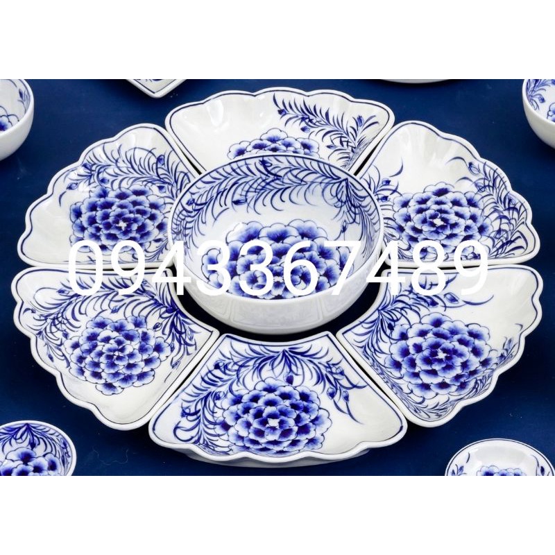 . Bộ bát đĩa vẽ cẩm tú cầu ĐK 48cm. Hàng sứ Bát Tràng.