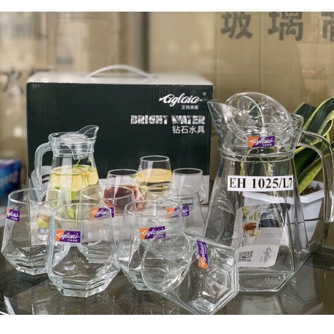 BỘ BÌNH 6 CỐC CAO CẤP EH1025 Chất liệu : thuỷ tinh Dùng để làm quà tặng cũng rất hợp lý có hộp đẹp sp gồm : 1 bình lớn và 6 cốc Đơn vị nhập khẩu và phân phối: Công ty TNHH gốm sứ Trung Hạnh Địa chỉ: Gia Lâm, Hà Nội