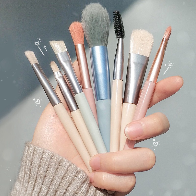 Bộ Cọ Trang Điểm 8 Cây Kèm Túi Zip Vintage