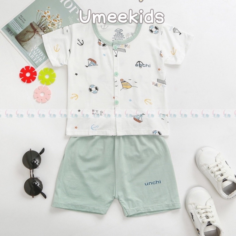 Bộ Cộc Tay Cúc Giữa Unchi peptit Hoạ Tiết Quần Màu Cho Bé Trai Bé Gái - Umee kids