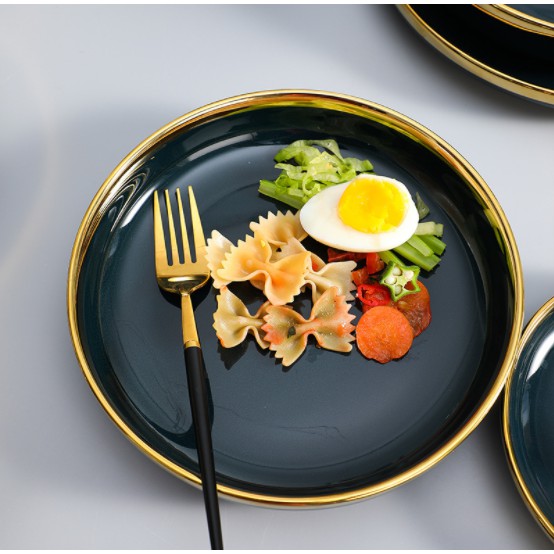 Bộ chén bát MÀU ĐEN viền vàng phong cách Bắc Âu sang trọng