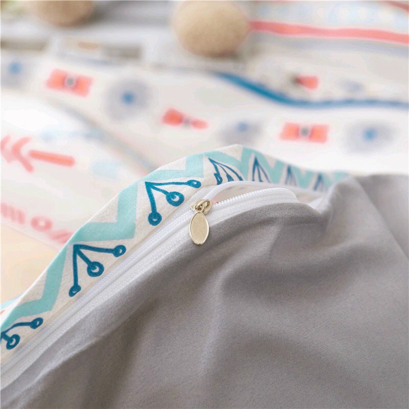 Bộ chăn ga Cotton poly Thổ cẩm trắng chăn ga nhập khẩu miễn phí bo chun