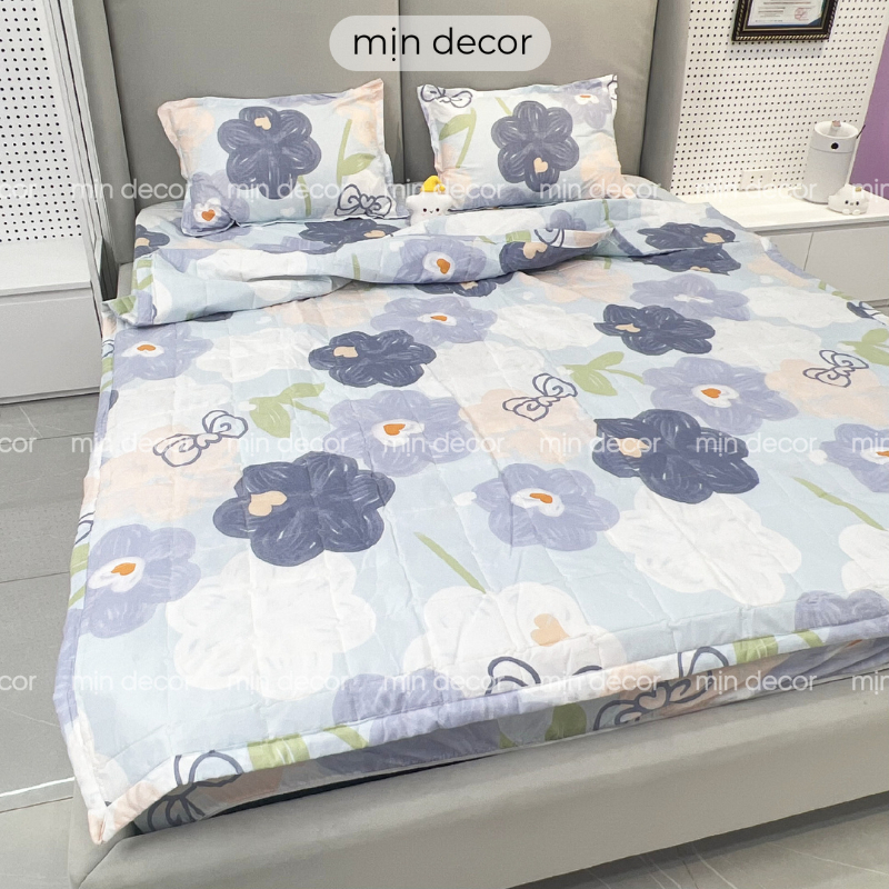 Bộ chăn ga gối cotton 3D có chăn trần bông hè mềm mịn bo chun MỊN DECOR