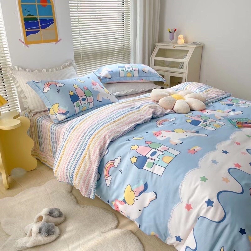 Bộ chăn ga gối cotton living cao cấp - set vỏ 4 món mẫu ngựa pony lâu đài