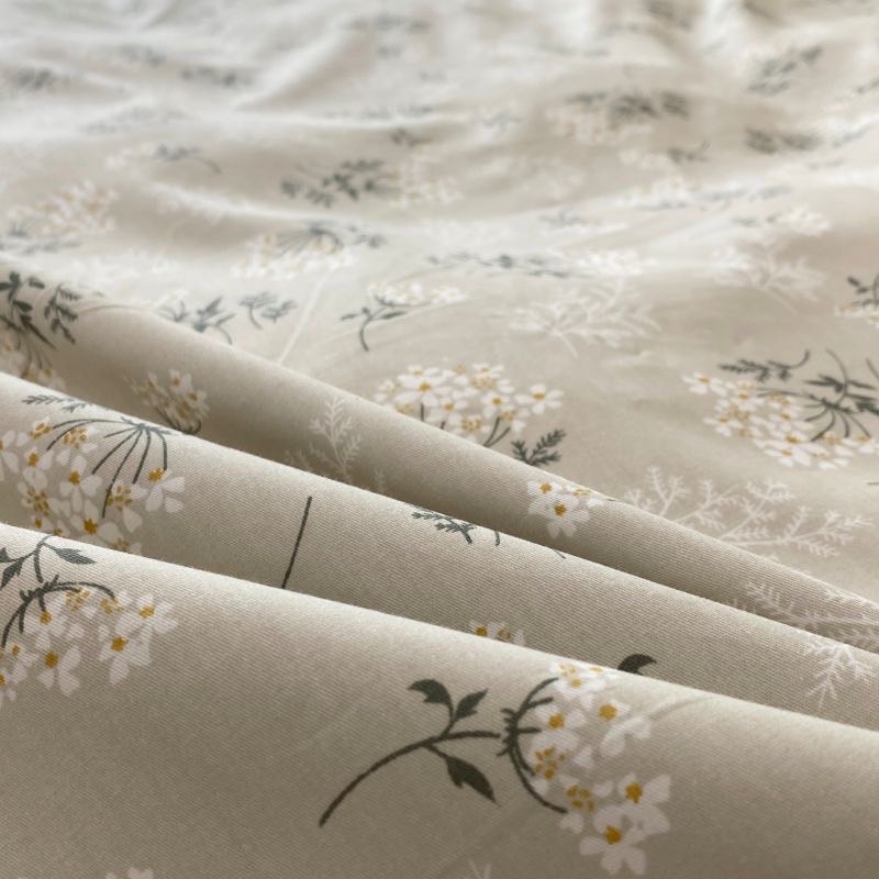 Bộ Chăn Ga Gối Cotton Poly 4 Món Hoa Nhí Xám Nhạt Vintage Decor Hàng Nhập Khẩu
