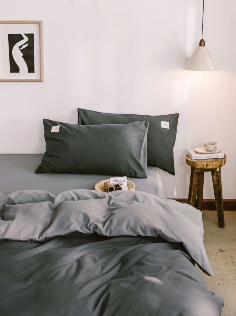 Bộ Chăn Ga Gối Cotton Tici Đũi Cao Cấp Ghi Đậm Pha Ghi Nhạt