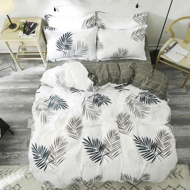 Bộ chăn ga gối lá cọ hiện đại.