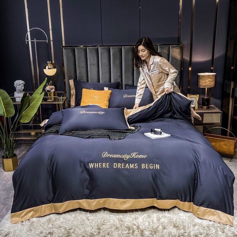 Bộ Chăn Ga Phi Lụa Thêu Cao Cấp 4 Món - DreamCity Home Đủ tiêu chí Sang, Mịn, Mát Bộ chăn ga lụa thêu Dreamcity Home được làm từ lụa pha cotton tập hợp hầu hết các ưu điểm của chất vải Lụa như thấm hút tốt, độ thoáng cao và đặc tính của vải lụa là bề mặn mịn, mát. Thê