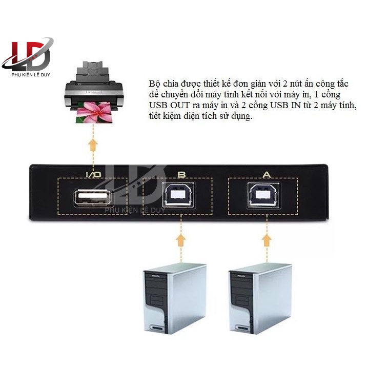 Bộ chia 2 máy tính dùng chung 1 máy in giá rẻ