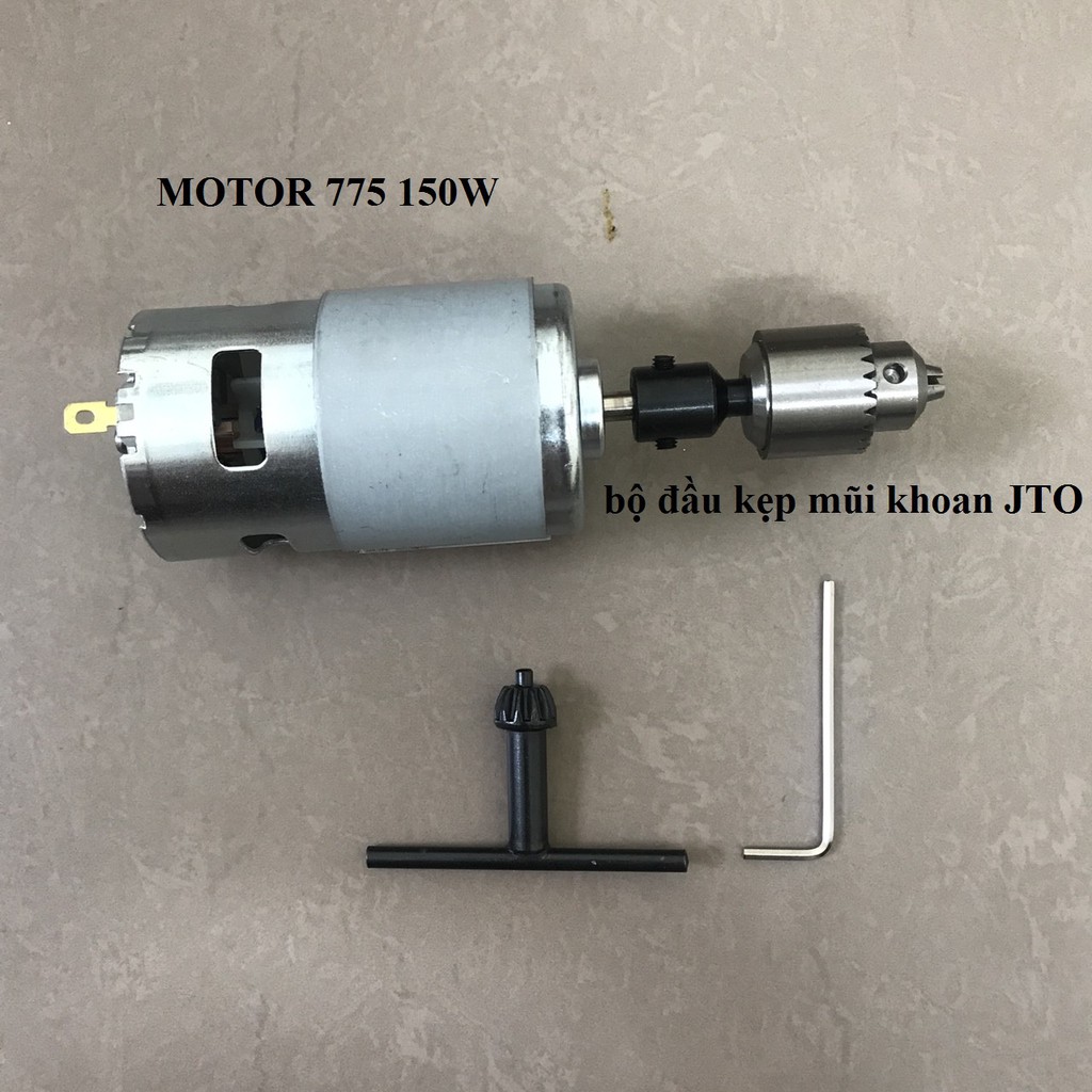 Sử Dụng Motor 775 150w - 18000 rpm Điện Áp : 12 - 24 VDC Đầu kẹp Khoan JTO kẹp Mũi KHoan từ 0.3 - 4mm với trục nối thép lỗ 5mm dễ dàng tháo lắp Bộ Sản Phẩm : Tất Cả Như Hình