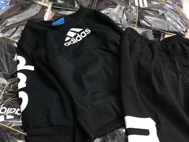 Bộ cotton #Adidas chất lừ mát lịm ahh Phối blackwhite cực đẹp. Rất hợp thời tiết chuyển giao các mẹ nhé! Sz 100-130 Giá chỉ #1xx xinh xinh 🥳