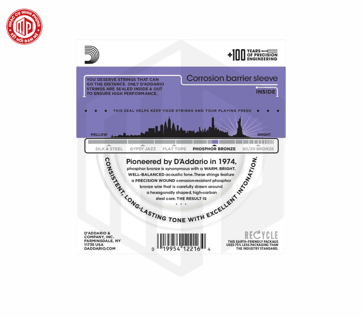 Bộ dây đàn Guitar Acoustic - D'Addario EJ26 - Phosphor Bronze, Custom Light Gauge .011-.052 - Hàng chính hãng