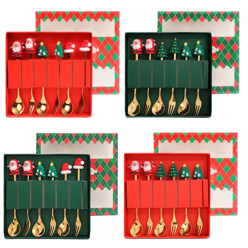 Bộ Dụng Cụ Bàn Ăn / Muỗng / Nĩa / Búp Bê Ông Già Noel Hoạt Hình Bằng Thép Không Gỉ Dễ Thương Làm Quà Tặng Giáng Sinh