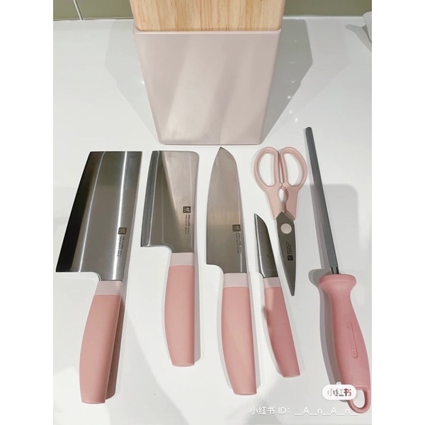 BỘ DAO ZWILLING NOW Set 7 MÓN MÀU HỒNG PASTEL SIÊU ĐẸP, màu đỉnh dã man luôn nè - dao gọt ( 100mm ) - dao cắt bánh mì (200 mm) - dao tiện ích (130 mm) - dao đầu bếp Compact (140 mm) - kéo - kệ cắm dao Lưỡi dao FRIODUR được làm bằng thép không gỉ cứng. Chúng cũng chống gỉ. Order 2 tuần. Kh xem thêm sản phẩm ghé fb e nhé 💪🏻
