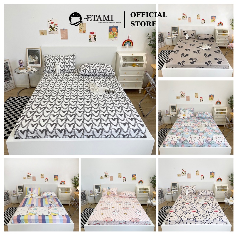 Bộ ga gối ETAMI drap giường cotton poly 5D, ga trải giường + 2 vỏ gối nằm nhiều mẫu cute
