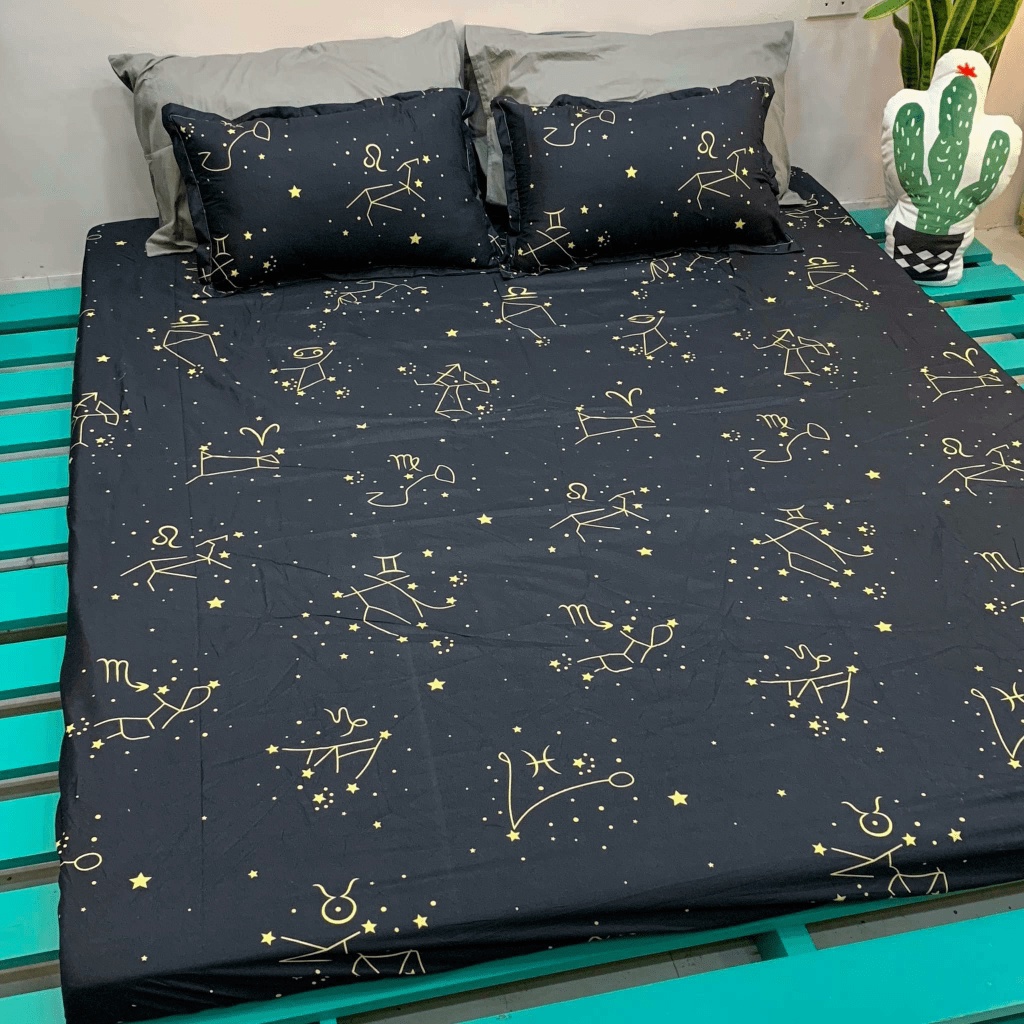 Bộ ga gối,ga trải giường 1m6/1m8 gồm 1ga 2 vỏ gối mẫu cành hoa cúc xanh và các mẫu hoạt hình đáng yêu Bà Béo Kho chăn g
