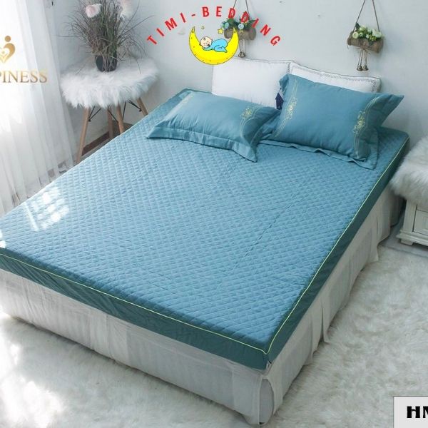 Bộ ga gối lụa 60s chun trần bông Happiness cao cấp mùa hè thoáng mát, sang trọng – Timibedding