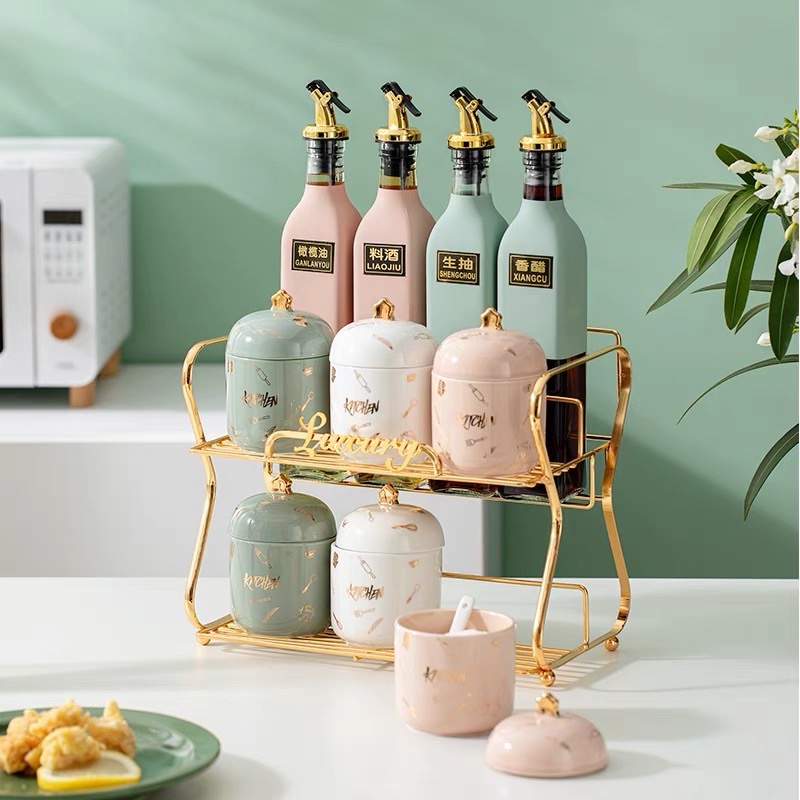 Bộ Gia Vị Gốm Sứ Màu Pastel Hũ Kín Phong Cách Hàn Quốc