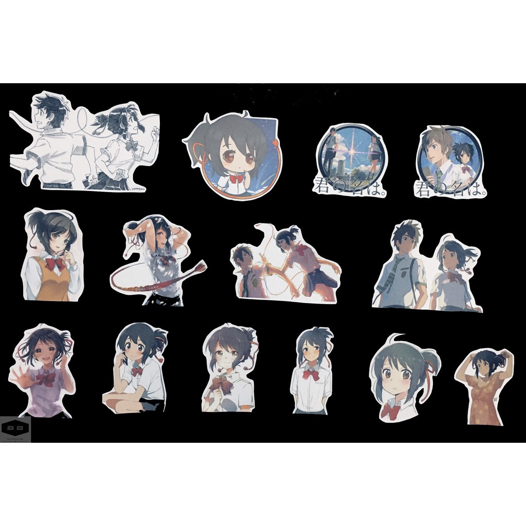 Bộ hình dán - sticker anime Your Name - Kimi no Na wa 1 bộ gồm: 30 miếng Chất liệu: Giấy decal Kích thước: khoảng 3-5 cm Ngoài ra bên mình còn nhận in móc khóa theo yêu cầu nhe ae Song Sinh Manga Shop Chuyên phụ kiện anime manga giá rẻ Shopee: shopee.vn/ngocngasinhdoi