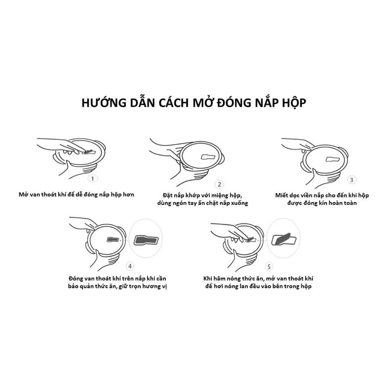 590.000 VNĐ/BỘ Bao gồm: - 1 Hộp dùng trong lò vi sóng Crystalwave lunch set (Dung tích: 950ml, Đường kính: 22cm, cao: 6.2cm) - 1 Bộ muỗng nĩa Picnicaholic - 1 Túi đựng Ưu điểm & Tiện ích: - Chất liệu nhựa nguyên sinh, an toàn chứa đựng thực phẩm - Nhiệt độ an toàn sử dụng: 0 độ C - 120 độ C - Nắp thiết kế kín, không thoát mùi thực phẩm, hạn chế rò rỉ thực phẩm khi mang đi (với điều kiện nắp nhỏ phải đóng) - Phù hợp mang thực phẩm theo khi đi làm, đi học và các hoạt động thường ngày khác,... Công dụng: - Dùng hâm nóng thực phẩm trong lò vi sóng và bảo quản thực phẩm trong ngăn mát tủ lạnh Cách đóng hộp đúng cách: 1. Đặt nắp khớp với miệng hộp, dùng ngón tay ấn chặt nắp xuống 2. Miết dọc viền nắp cho đến khi hộp được đóng kín hoàn toàn 3. Đóng chặt nắp nhỏ phía trên nắp lớn khi muốn bảo quản thực phẩm 4. Dùng tay ấn mở nắp nhỏ phía trên nắp lớn khi muốn hâm nóng thực phẩm Bí quyết và chăm sóc: - Không đựng thực phẩm quá đầy, nên cách miệng hộp 2 cm - Không nên dùng sản phẩm trong lò vi sóng với các chế độ nấu ăn (nướng, hấp) hoặc chế độ rã đông - Dùng an toàn trong máy rửa chén (dưới 65 độ C) - Không tiếp xúc hoặc để gần nguồn nhiệt để tránh nóng chảy, biến dạng - Không sử dụng trong ngăn đông tủ lạnh - Không chùi rửa bằng dụng cụ sắc nhọn - Không nên hâm các loại thức ăn nhiều dầu mỡ hoặc caramel/ đường nóng chảy vì nhiệt độ sôi của các loại thực phẩm này rất cao (trên 120 độ C) - Vệ sinh ngay sau sử dụng với các thực phẩm có đậm màu (cà ri, sốt cà chua...) để hạn chế bám màu thực phẩm (hiện tượng bám màu không ảnh hưởng đến chức năng sử dụng của sản phẩm) - Khi hâm nóng trong lò vi sóng, nên sử dụng chế độ trung bình 500W và dưới 3 phút. Nếu muốn hâm nóng trong khoảng thời gian lâu hơn 3 phút thì nên mở toàn bộ nắp lớn, tạm ngưng nhiều lần và đảo đều thức ăn để nóng đều thực phẩm. - Khi mở nắp hộp ngay sau khi vừa hâm nóng, nên giữ khoảng cách an toàn tránh hơi nóng phả trực tiếp vào người. Chú ý khi sử dụng với trẻ em Lưu ý: Không sử dụng sản phẩm với công suất cao hoặc không mở nắp nhỏ khi hâm nóng thực phẩm trong thời gian dài để tránh tình trạng bị dãn nắp sản phẩm
