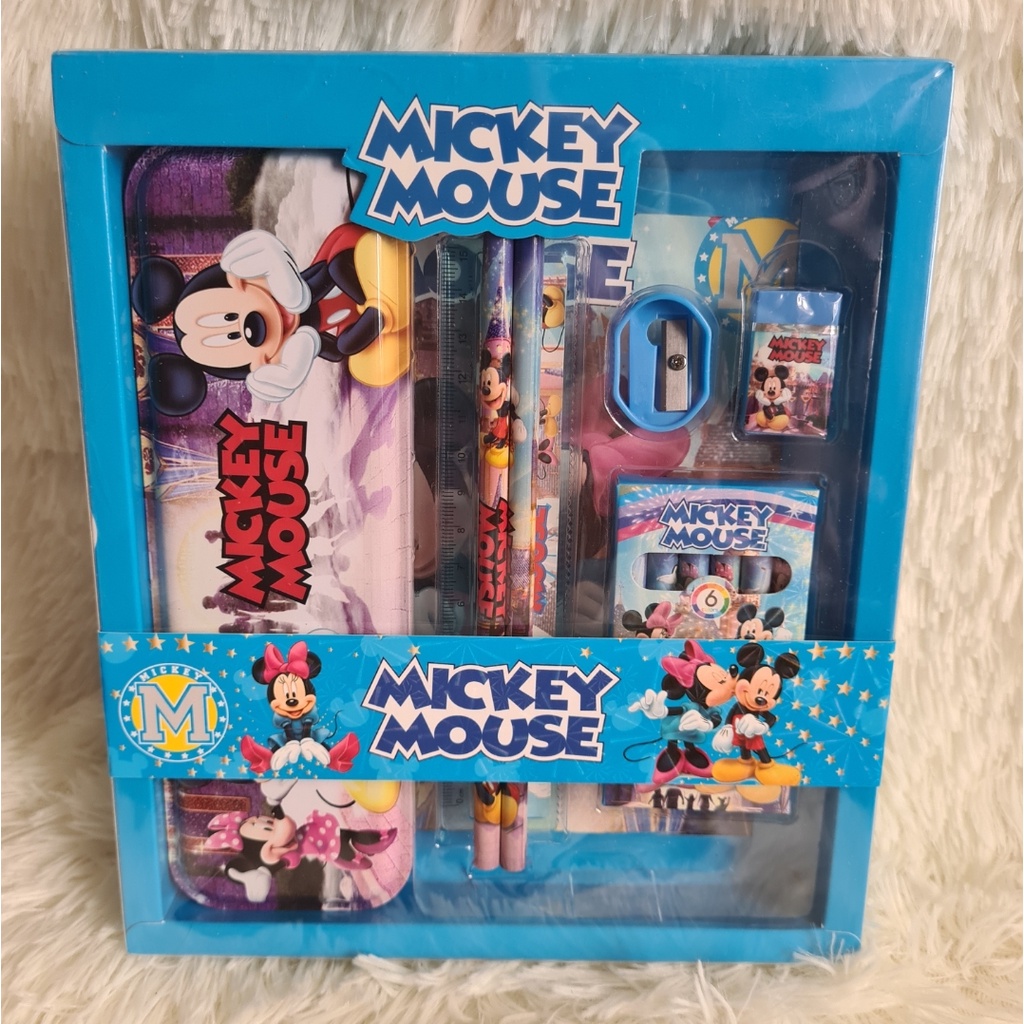 Bộ hộp quà 7 món: bút chì thước kẻ tẩy hộp bút sáp màu cho bé yêu.