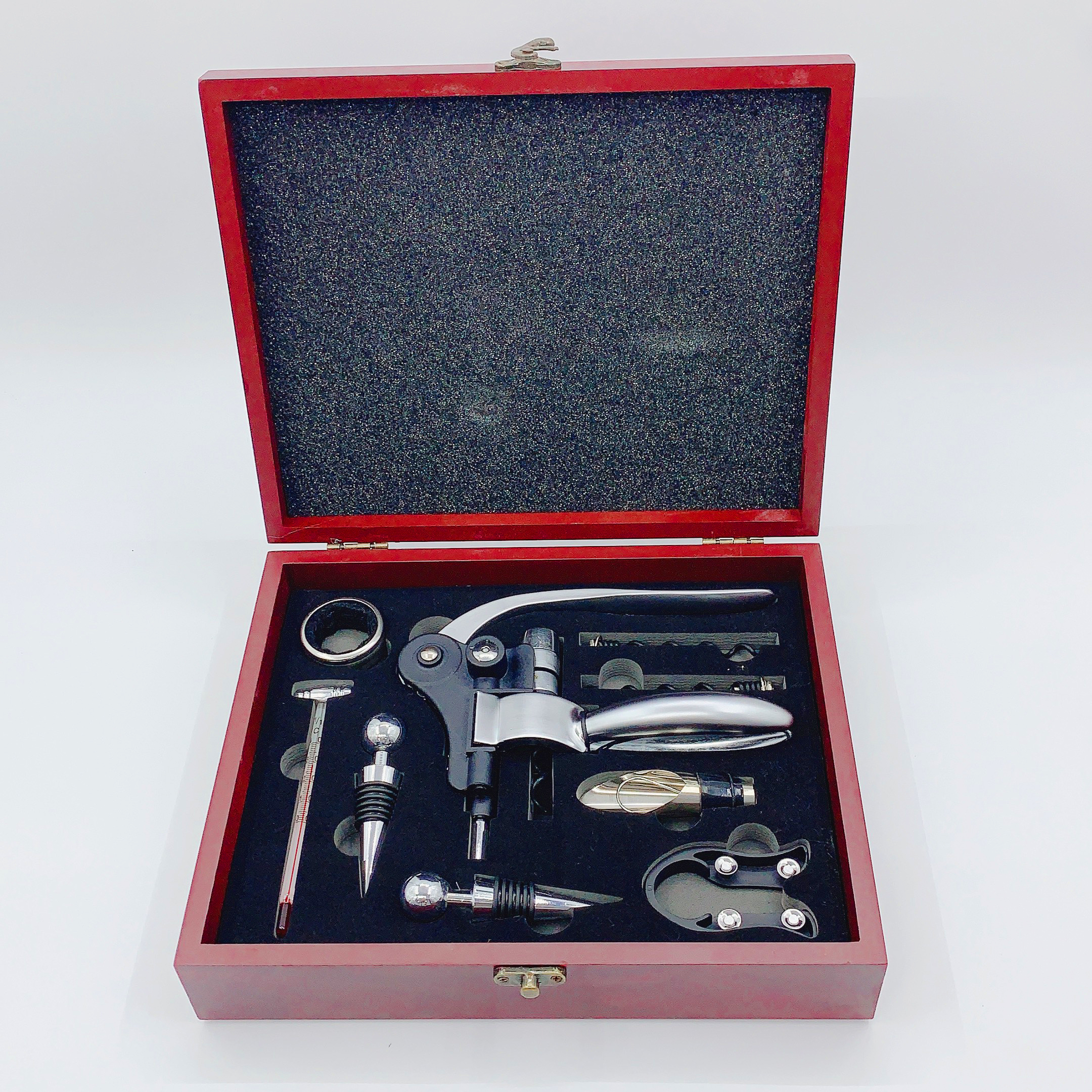 Bộ Khui Chai Vang Thể Hiện Đẳng Cấp Sang Trọng Hộp Sơn Mài Đỏ 9 Phụ Kiện