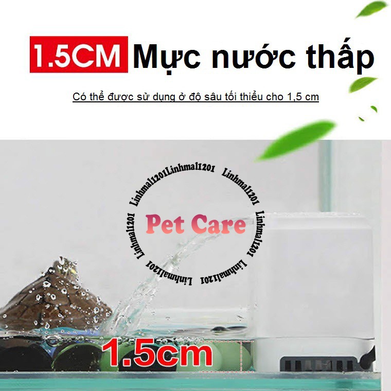 Tính năng, đặc điểm: - Chỉ phù hợp với bể nhỏ Bộ lọc nước thấp cung cấp một thác nước đẹp cho rùa, Động vật lưỡng cư, ếch - Hoạt động im lặng. - Nhỏ để tiết kiệm không gian. - Dễ dàng lọc nước cho rùa của bạn với thác nước. - Vị trí thấp 1,5cm (mực nước thấp) để chảy