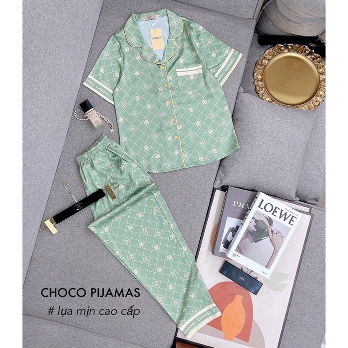 Bộ lụa dài tay hãng sam choco áo dài tay quần dài bộ mặc nhà đẹp bộ pijama cao cấp