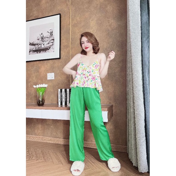 Bộ lụa Latin hai dây nút phối màu, hoạ tiết xinh xắn