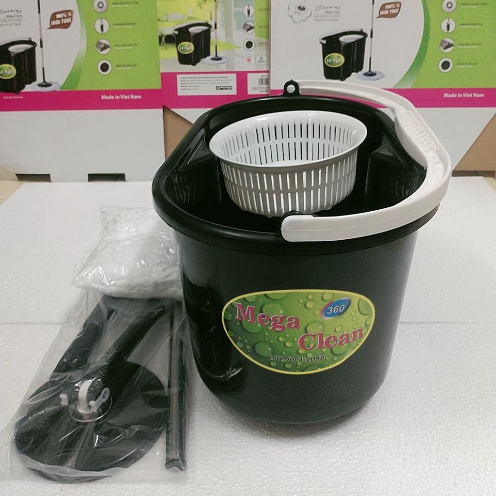 Thông tin sản phẩm: Bộ lau nhà 360 độ - Tên sản phẩm: Bộ lau nhà 360 độ Mega Clean - Xuất xứ: Việt Nam - Màu sắc: Đen - Kích thước: Thân cây 120 cm, xô 28 cm, Bông lau 16 cm - Bảo hành: 1 tháng - Bộ Bộ lau nhà 360 độ gồm: 1 thùng nhựa có rổ giặt, 1 bộ thân c