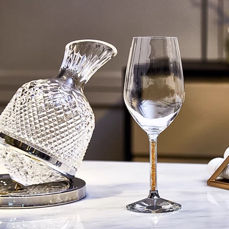 Bộ ly thuỷ tinh pha lê và bình thở rượu vang xoay không chứa chì cao cấp