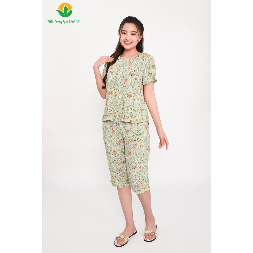 Bộ mặc nhà nữ mùa hè Việt Thắng, quần lửng, áo cộc tay, chất lanh - B06.2307