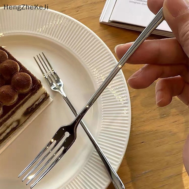 Bộ Nĩa Ăn Tráng Miệng Bằng Thép Không Gỉ Tay Cầm Dài Phong Cách Hàn Quốc Cho Nhà Bếp