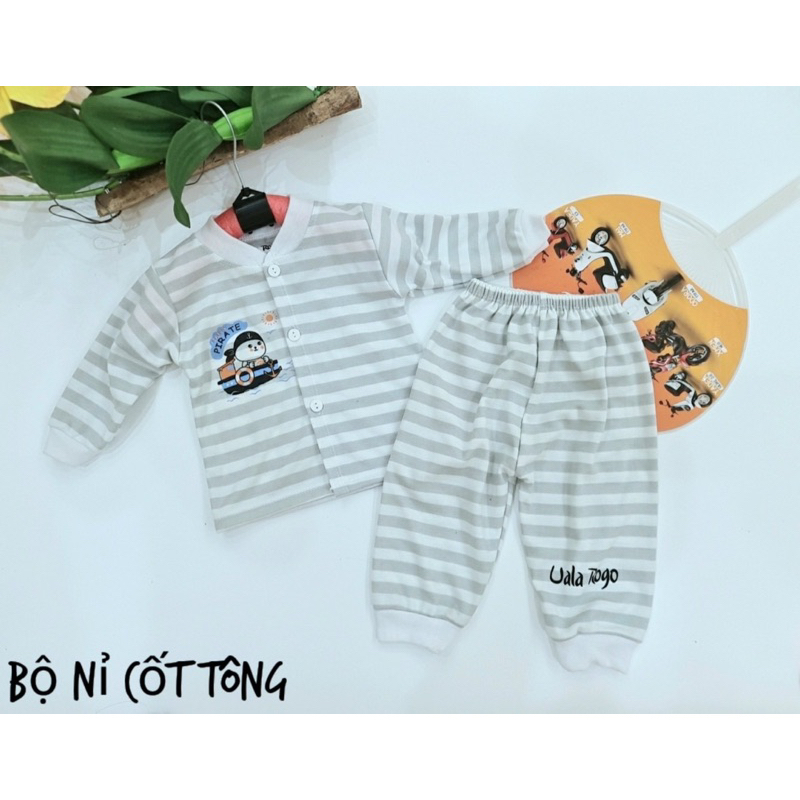 Bộ nỉ cotton kẻ cho bé