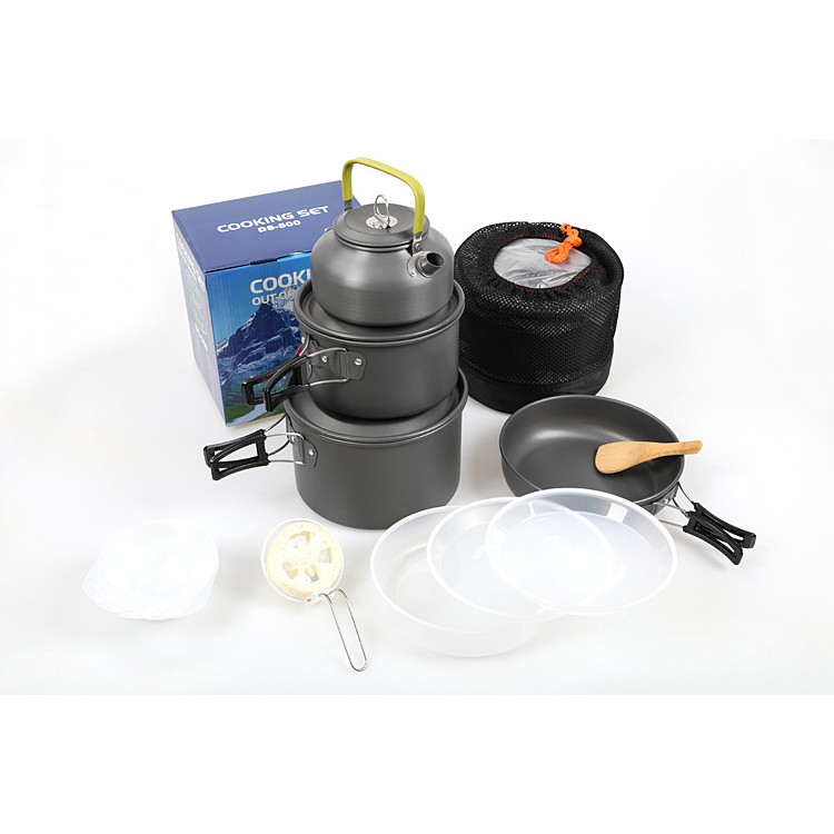 Trong những chuyến đi, hành trình chinh phục đỉnh núi, những cung đường trekking nhiều ngày để đảm bảo đủ sức khỏe không bị đói dọc đường nhưng vẫn có đồ ăn nấu chín, nấu nước nóng, pha trà, cà phê, ... giữ cho tinh thần thoải mái và sảng khoái không thể không mang theo bên mình bộ nồi dã ngoại DS-508 dành cho 4-5 người ăn. Những đêm lửa trại, buổi đi ra ngoại ô cắm trại, dã ngoại với bạn bè, để tiện lợi chế biến thức ăn cho nóng sốt góp phần cho buổi tiệc trại thêm ấm cúng và bữa ăn ngon miệng, bộ nồi dã ngoại DS-508 là sự lựa chọn hoàn hảo. Bộ nồi dã ngoại DS-508 đều có tay cầm gấp để tiết kiệm không gian và nhỏ gọn. Bộ này là hoàn hảo cho cắm trại, đeo ba lô, đi bộ đường dài, chuẩn bị khẩn cấp, hoặc là một phần của bộ dụng cụ sinh tồn. Khi bộ đầu bếp được gắn với nhau (có nắp trên nồi) để đi lại và lưu trữ, nó có chỗ để mang bếp, diêm, gia vị, muối, hạt tiêu, miếng rửa chén và nhiều thứ khác để giữ mức tiêu thụ không gian chung của bạn tối thiểu Chất liệu: Nhôm chất lượng cao Chức năng: Thân thiện với môi trường, di động, siêu nhẹ, di động, nấu, xào. Tay cầm có thể gập lại và dễ dàng cất giữ, với tay cầm bằng silicon để bảo vệ bạn khỏi bị bỏng tay. Tên sản phẩm: Bộ nồi cắm trại dã ngoại DS-508 Cấu hình tiêu chuẩn đóng gói: + 01 nồi lớn: kích thước cao 13cm có nắp, đường kính 19.5cm + 01 nồi vừa: kích thước cao 9.5cm có nắp, đường kính 17.3cm + 01 ấm nước: kích thước cao 8.6cm có nắp, đường kính 14.0cm, dung tích 0.8L + 01 chảo rán lớn: kích thước cao 5.5cm, đường kính 20.2cm + 02 đĩa: kích thước đường kính 16.5cm, cao 2cm + 01 bát súp: kích thước cao 4.0cm, đường kính 17.5cm + 05 bát cơm: kích thước cao 3.9cm, đường kính 10cm + 01 vá cơm + 01 vá súp, 01 bọt biển rửa chén. Trọng lượng: khoảng 1.5kg Xuất xứ: Trung Quốc Hãy đánh giá, nhận xét chúng tôi để chúng tôi phục vụ quý khách tốt hơn. Cảm ơn! #bonoidangoaids508 #ds508 #camtrai #dangoai #bonoicamtrai #bonoids508