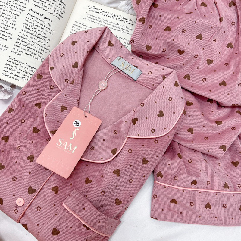 Bộ nhung tăm mềm mịn hãng sam - choco siêu đẹp mặc cực kỳ thích bộ pizama mặc nhà