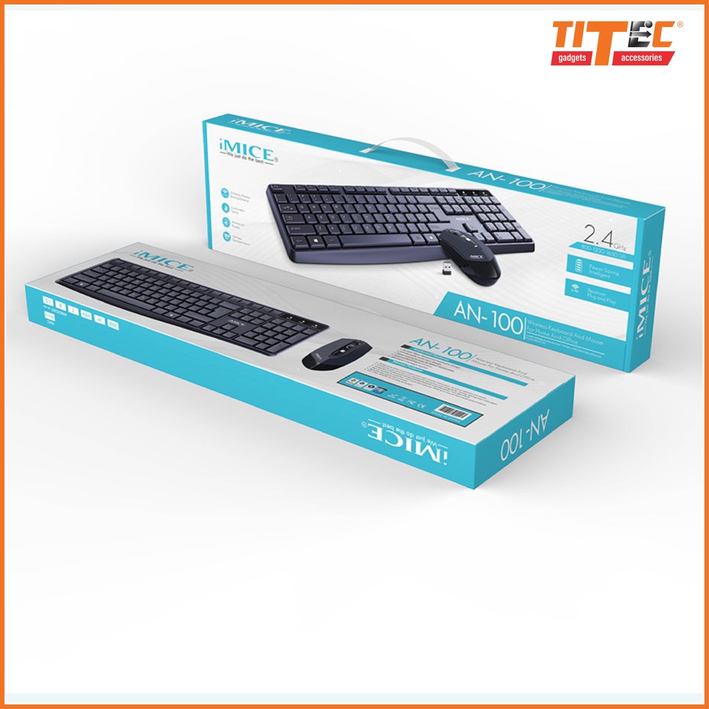 Bộ phím chuột không dây IMICE AN100, 2400DPI, 104 nút bấm, kết nối USB Wireless - hàng chính hãng