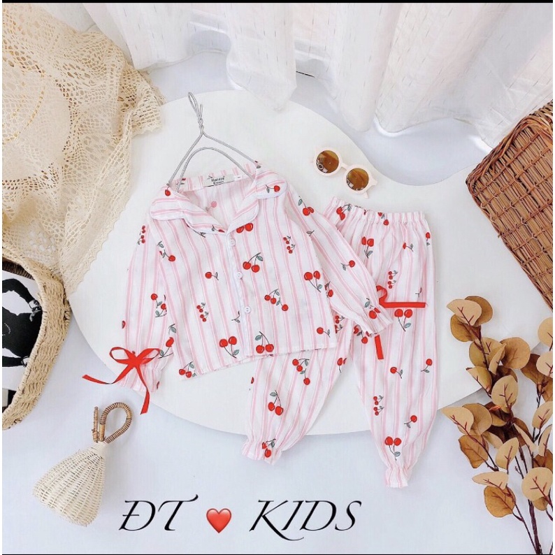 Bộ Pijama Dài Tay Mặc Ngủ Điều Hòa Thu Đông Bé Gái