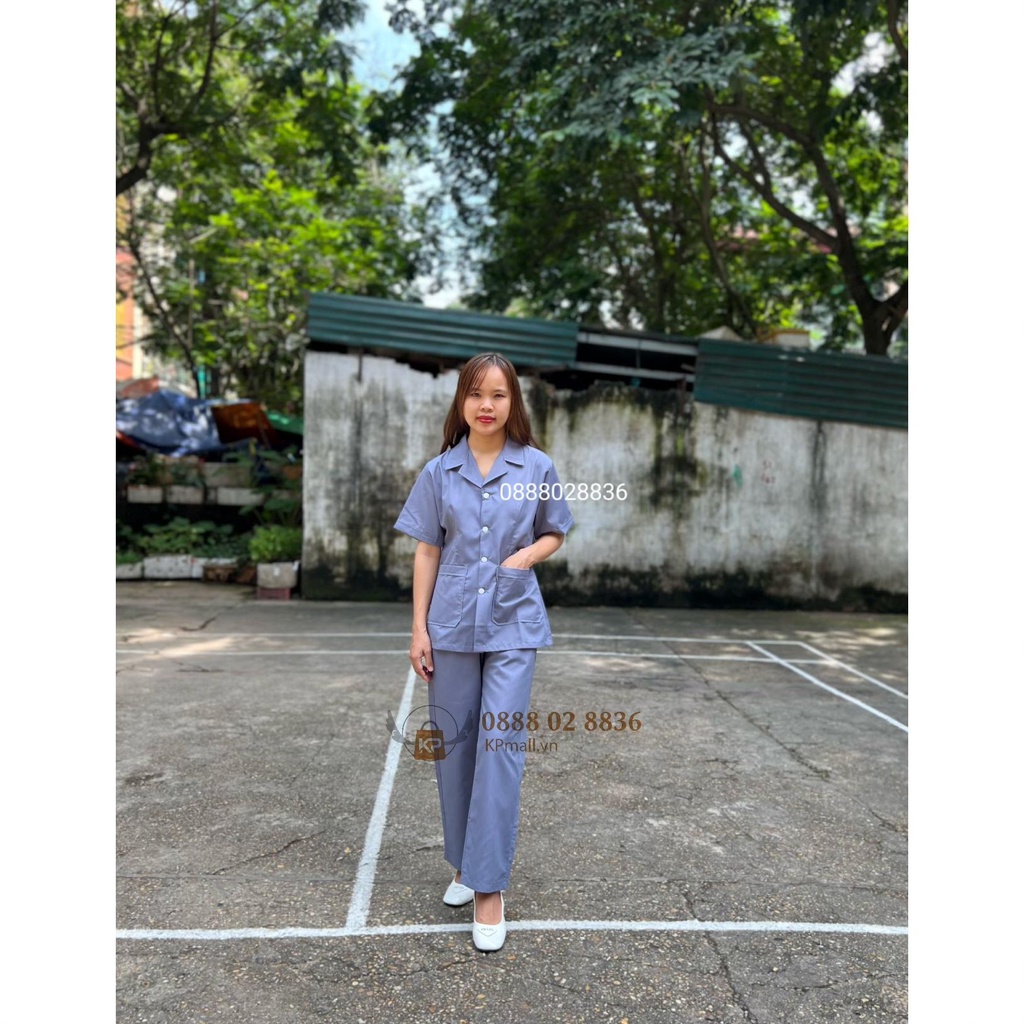 Bộ quần áo công nghệ màu GHI XÁM cho hộ lý, nhân viên tạp vụ, công nhân vệ sinh bệnh viện, nhà hàng, khách sạn. quán ăn