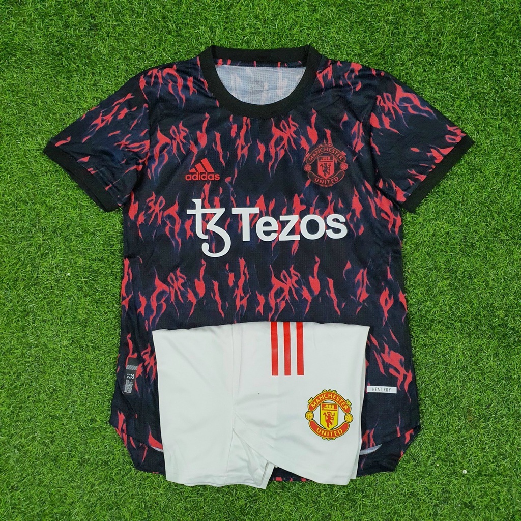 Bộ quần áo clb bóng đá clb MU Manutd Vằn Đen Đỏ T3 Tezos Quần Sẻ Tà Mới 2022
