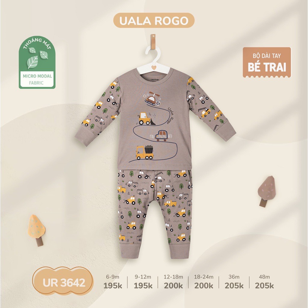 Bộ Quần Áo Dài Tay Uala Rogo Vải Modal Hoạ Tiết Hình Ô Tô Cho Bé UR3642