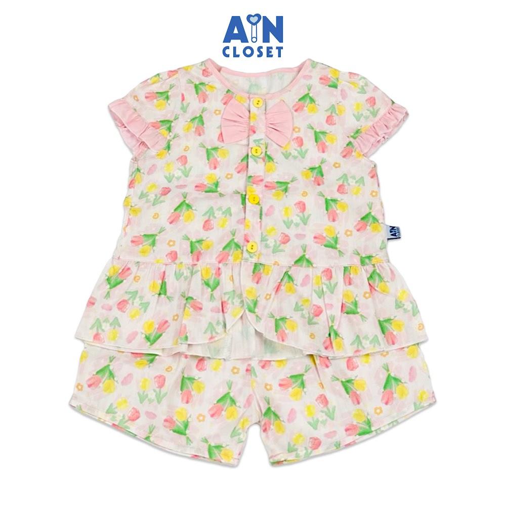 Bộ quần áo Ngắn bé gái họa tiết hoa Tulip Hồng Sữa cotton - AICDBGTIPPA9 - AIN Closet