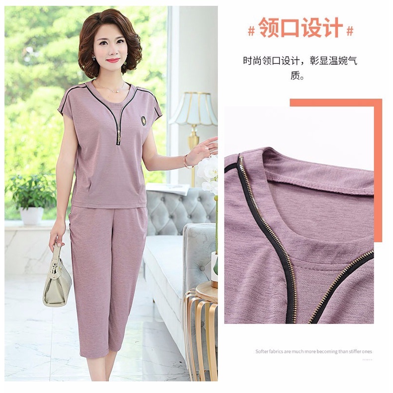 Bộ Quần Áo Ngắn Tay Thời Trang Mùa Hè Cho Phụ Nữ Trung Niên 40-50 Tuổi