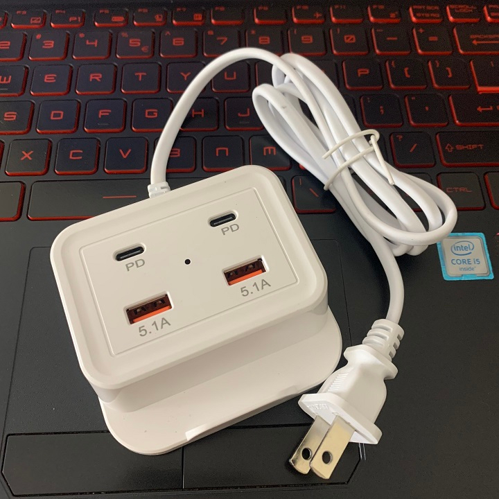 Thông tin chi tiết : - Màu sắc : Trắng - Đầu vào : AC100-240V 50/60Hz - Cổng ra : * 2 USB 5.1A + 2 PD 20W * - Loại phích cắm : Phích cắm US - Chất liệu : ABS chống cháy Đặc điểm : - Chức năng : Có thể sạc nhiều thiết bị cùng lúc. Khả năng tương thích : - Phổ biến và p
